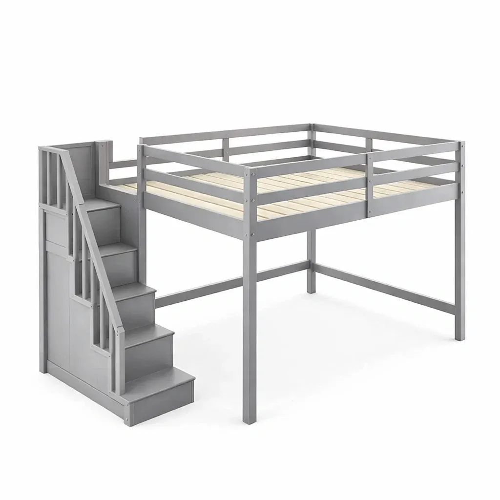 Liste des produits : lit mezzanine, escalier, sommier à lattes, garde-corps.