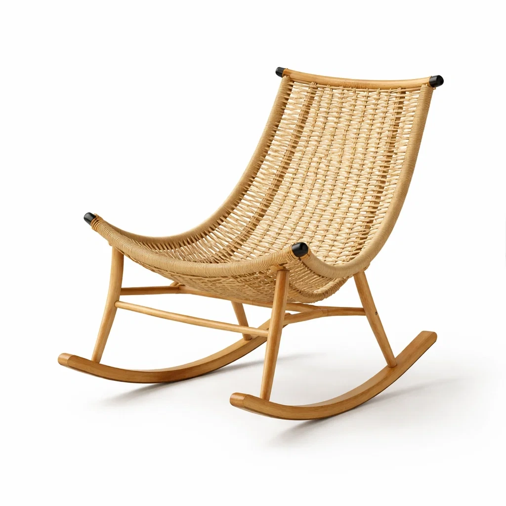 Fauteuil à bascule en bois et rotin naturel