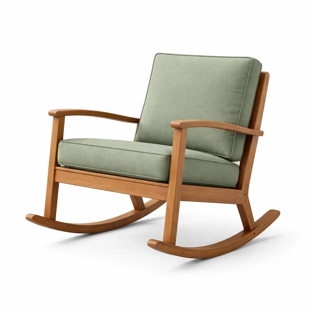 Fauteuil à bascule en bois et tissu vert