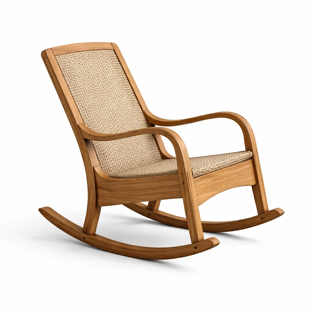 Fauteuil à bascule en bois et tissu beige