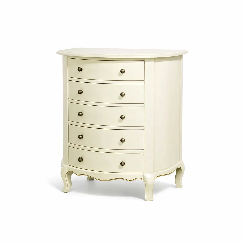 Cette commode est fabriquée en bois massif avec des boutons en métal.