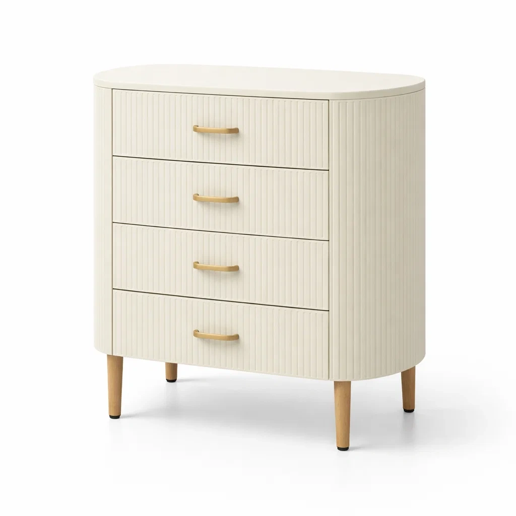 Commode ovale en bois et métal blanc et or avec tiroirs