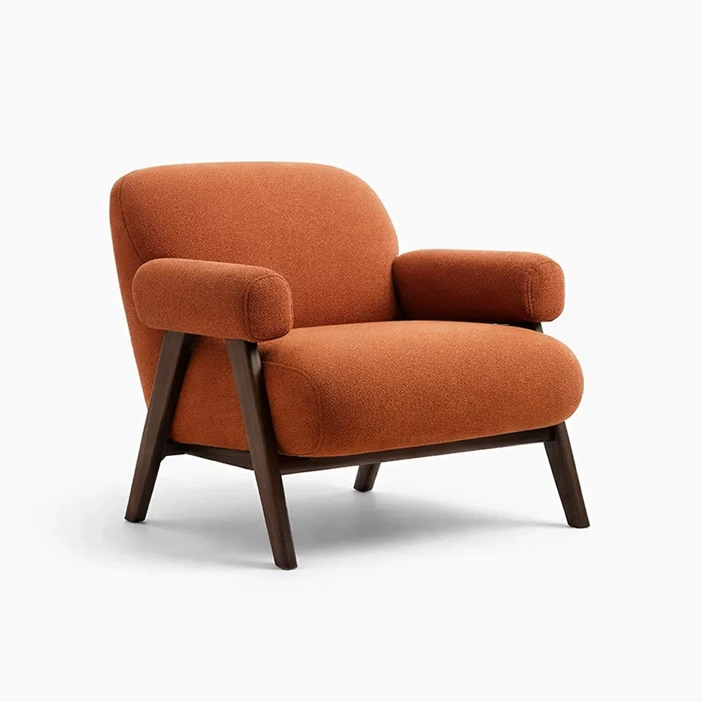 Fauteuil en tissu polyester orange avec cadre en bois massif