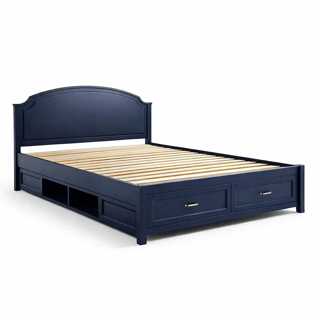 Caractéristiques : Lit double avec tête de lit voûtée, équipé de tiroirs intégrés